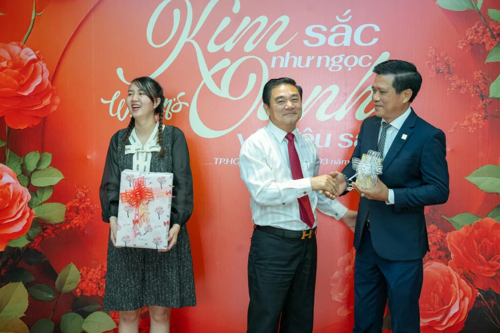 Bên cạnh những lời chúc tốt đẹp từ phái mạnh, các chị em còn được nhận những món quà ý nghĩa thay cho lời tri ân chân thành, sự trân quý của Tập đoàn dành cho những đóng góp thầm lặng nhưng vô cùng to lớn của phái đẹp Kim Oanh Group.