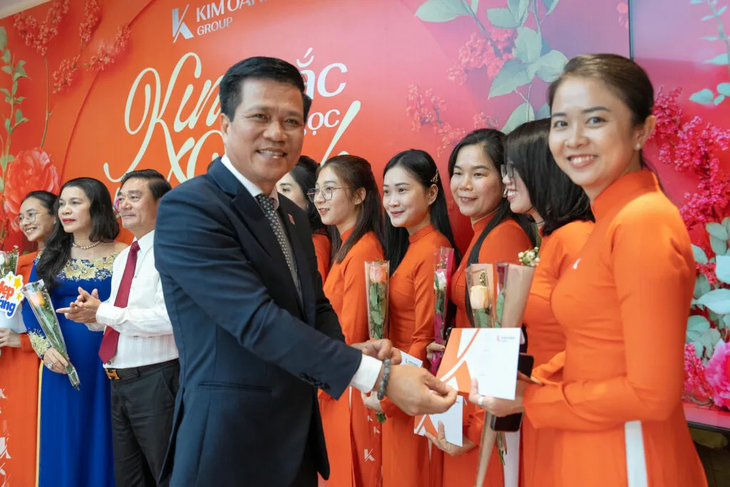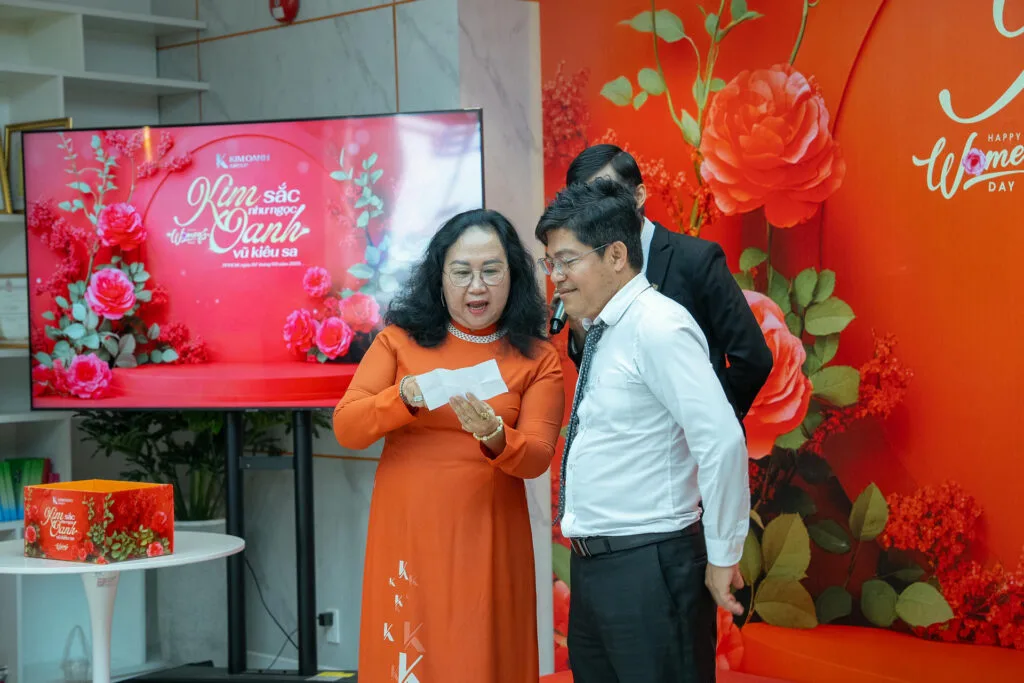 Tại chương trình, ông Nguyễn Thuận – Phó Chủ tịch HĐQT Tập đoàn đã thay mặt cho Ban lãnh đạo và phái mạnh toàn hệ thống gửi lời chúc chân thành nhất đến toàn thể lãnh đạo nữ, cán bộ nhân viên: “Phụ nữ luôn là những bông hoa rực rỡ, không chỉ tô điểm cho cuộc sống thêm sắc màu, chính sự tận tâm, trách nhiệm và tài năng của các chị em đã góp phần tạo nên một Kim Oanh Group vững mạnh, đoàn kết. Thay mặt Ban lãnh đạo và toàn thể anh em trong Tập đoàn, tôi xin gửi lời cảm ơn chân thành đến tất cả các chị em và chúc mọi người luôn hạnh phúc, xinh đẹp và thành công trên mọi hành trình của mình”.