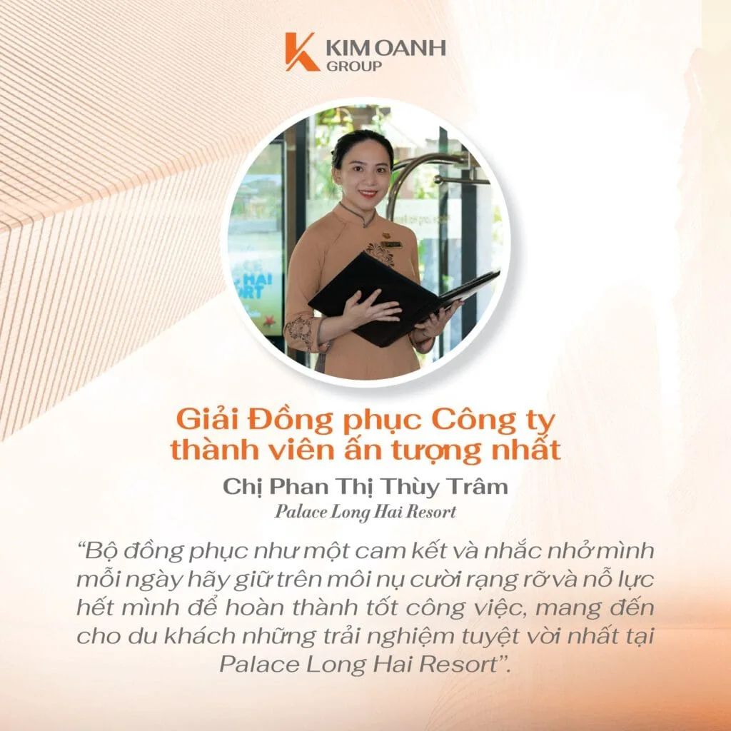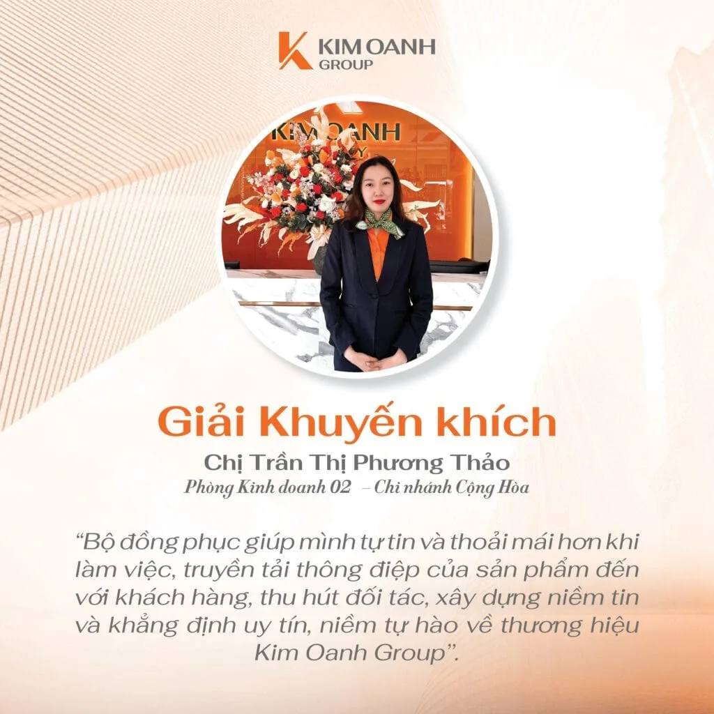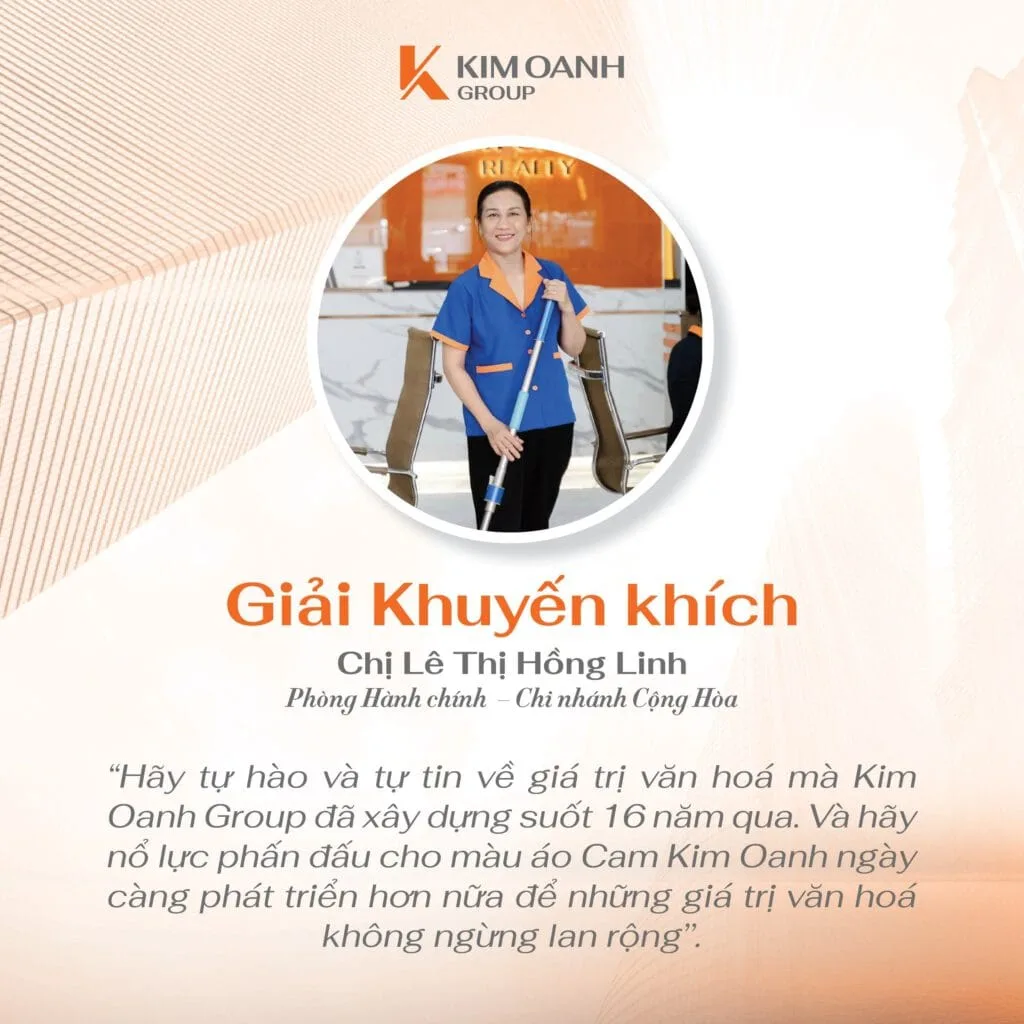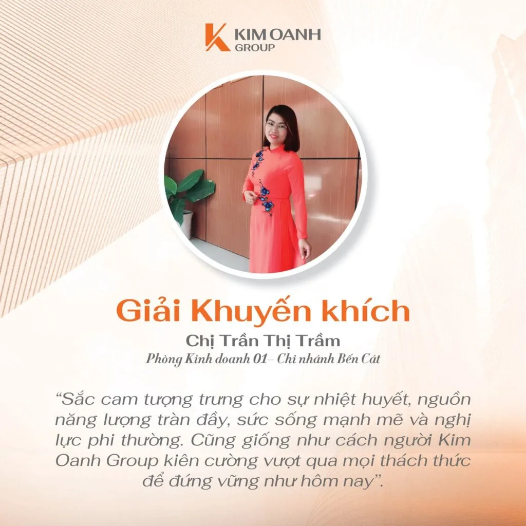 “Đã là cuộc thi thì hẳn sẽ có người đạt giải, có người chưa đạt giải nhưng trong vai trò Trưởng Ban giám khảo, tôi nhận thấy rằng tất cả bài thi đều chất lượng và xứng đáng được trao thưởng. Có lẽ giải thưởng giá trị nhất chính là sự ghi nhận của toàn hệ thống đối với bài thi của các bạn. Còn trong vai trò là lãnh đạo Tập đoàn, tôi đánh giá cao những giá trị mà cuộc thi đã đem lại và vô cùng tự hào với tinh thần lan tỏa cũng như tình yêu, sự cống hiến mà đội ngũ nhân sự dành cho Kim Oanh Group” – bà Nguyễn Ngọc Ánh chia sẻ.