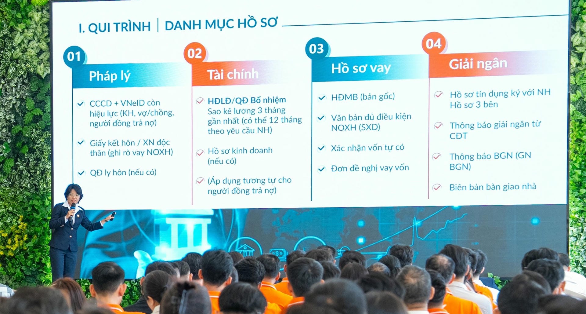 Bà Hồ Gái – đại diện phòng Tài chính Kim Oanh Group đã chia sẻ những thông tin hữu ích về quy trình vay vốn, tài chính thẩm định tài trợ cho vay NOXH. Trong đó, bà nhấn mạnh một trong những điểm cần đặc biệt lưu ý là thông tin định danh điện tử. Ngoài căn cước công dân, khách hàng cần hoàn tất định danh VNeID, đồng thời kiểm tra đầy đủ thông tin các thành viên trong hộ gia đình, đảm bảo mối quan hệ ba mẹ – con cái, họ tên, ngày sinh và số căn cước công dân trùng khớp với hợp đồng mua bán.