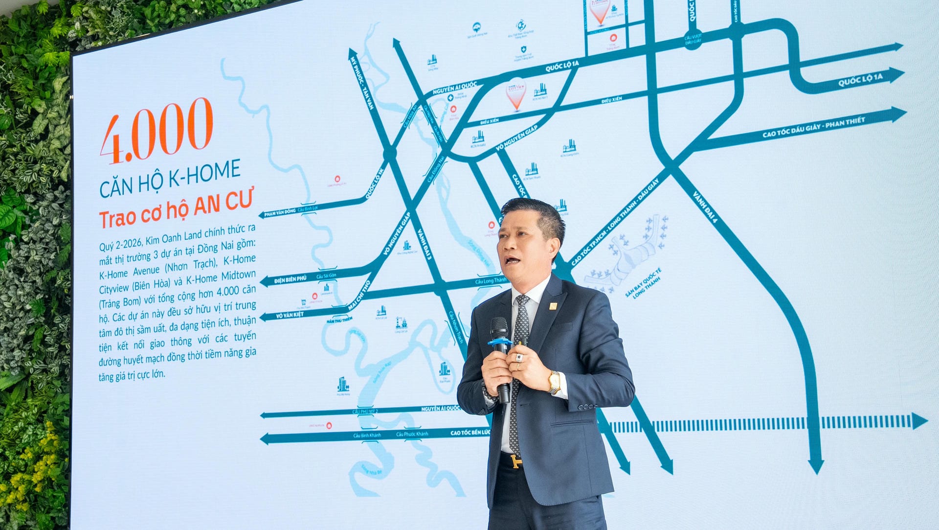 Cũng tại chương trình, ông Tô Duy Chinh đã tiết lộ những thông tin chi tiết về kế hoạch phát triển các dự án NOXH của Kim Oanh Land trong thời gian tới. Theo đó, trong quý II/2026, Kim Oanh Land dự kiến ra mắt 3 dự án mới tại Đồng Nai gồm K-Home Avenue, K-Home Cityview và K-Home Midtown, cung cấp ra thị trường hơn 4.000 căn hộ. Tất cả dự án đều được quy hoạch tại những khu vực trung tâm đô thị đang phát triển, sở hữu hệ thống tiện ích đa dạng và khả năng kết nối thuận lợi với các trục giao thông huyết mạch của khu vực.