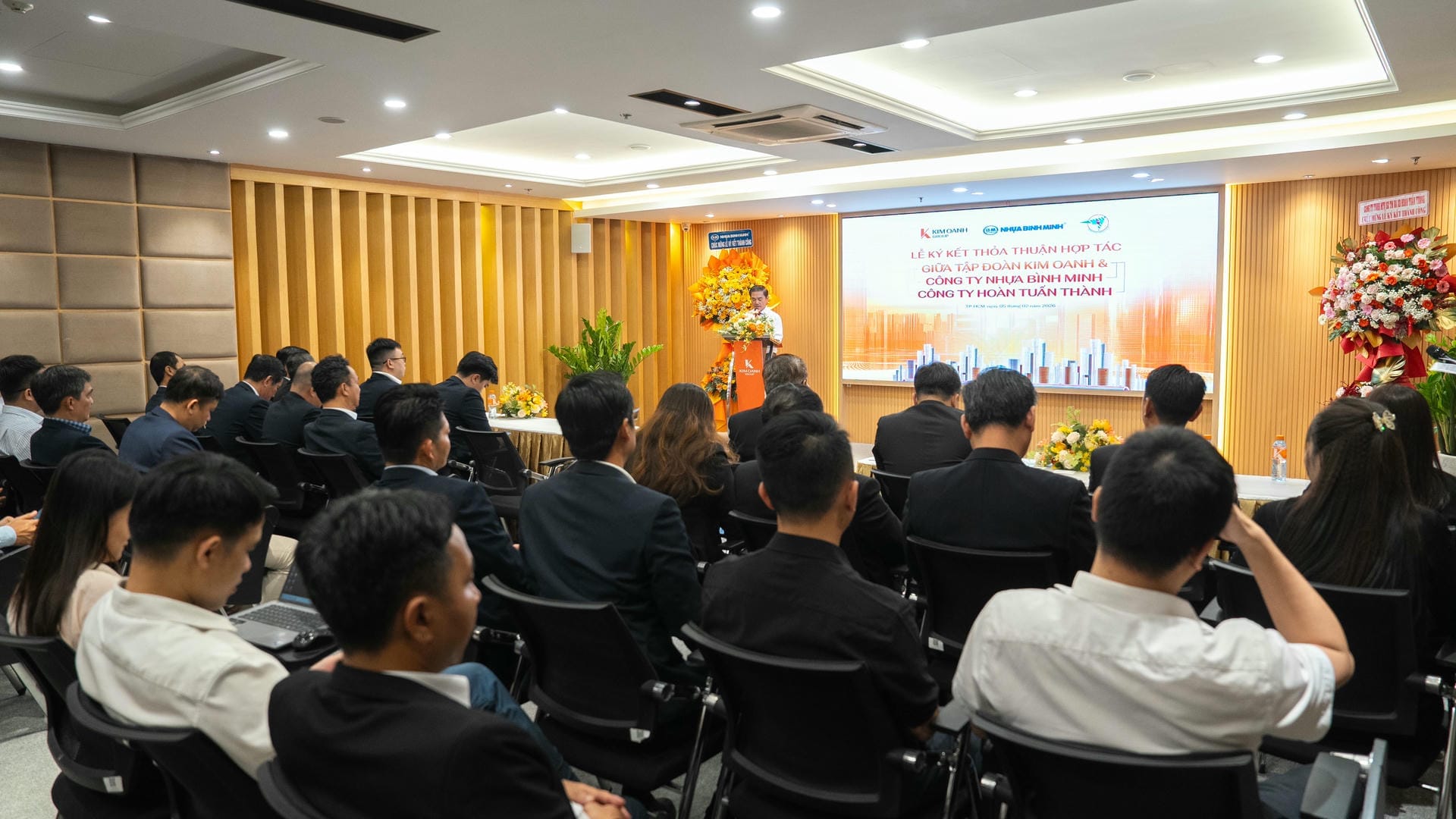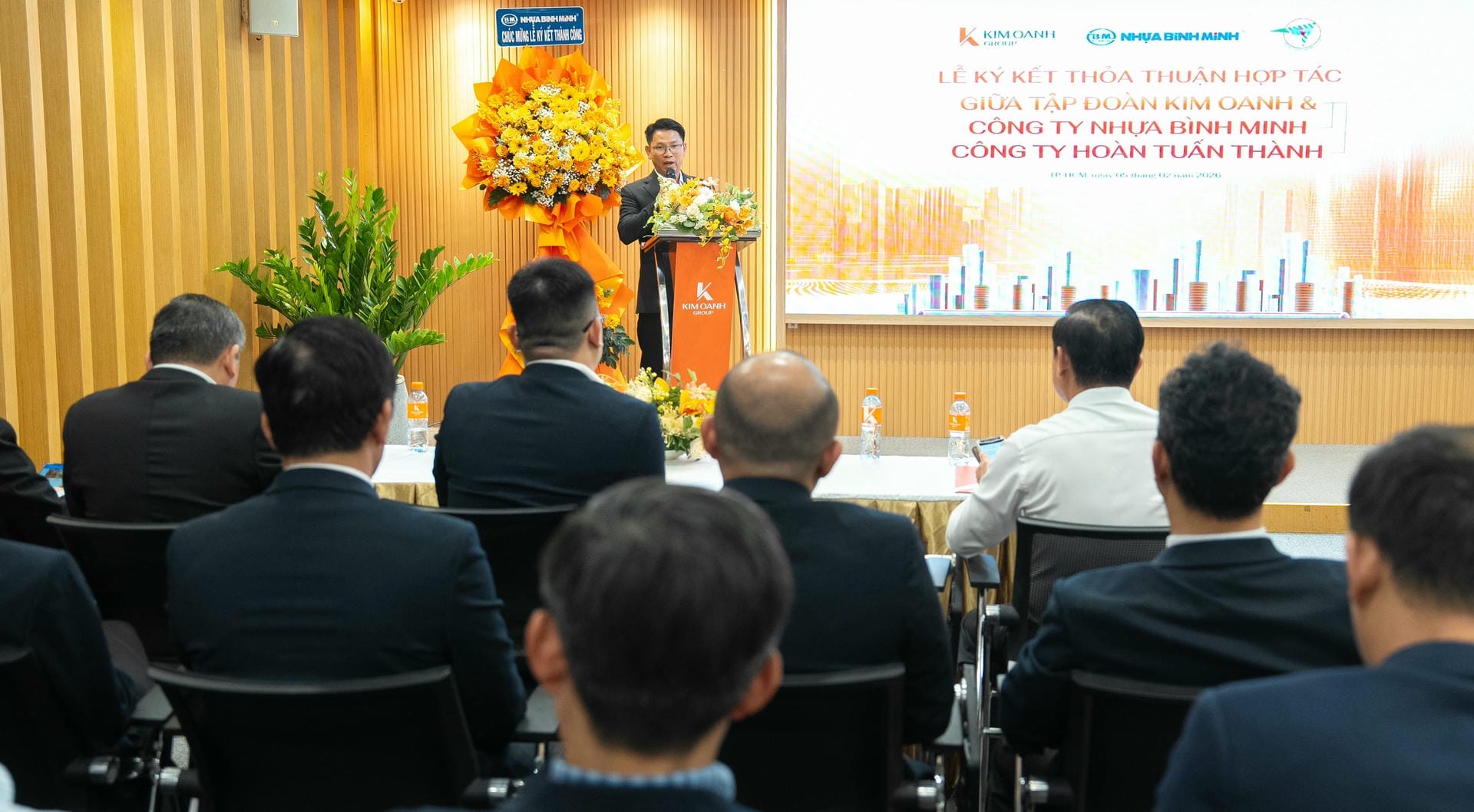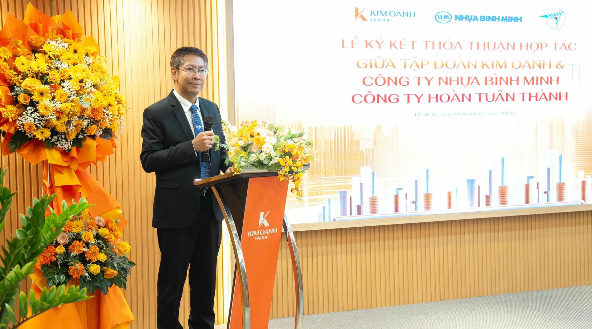 Ngày 05/02, tại TP.HCM, Kim Oanh Group đã chính thức ký kết thỏa thuận hợp tác với hai đối tác lớn trong lĩnh vực vật liệu xây dựng: Công ty Cổ phần Nhựa Bình Minh và Công ty TNHH SX TM & XD Hoàn Tuấn Thành. Đây là dấu mốc có ý nghĩa quan trọng trong chiến lược mở rộng hợp tác cùng các doanh nghiệp uy tín hàng đầu trên cả nước của Kim Oanh Group nhằm đảm bảo tiến độ và nâng cao chất lượng dự án.