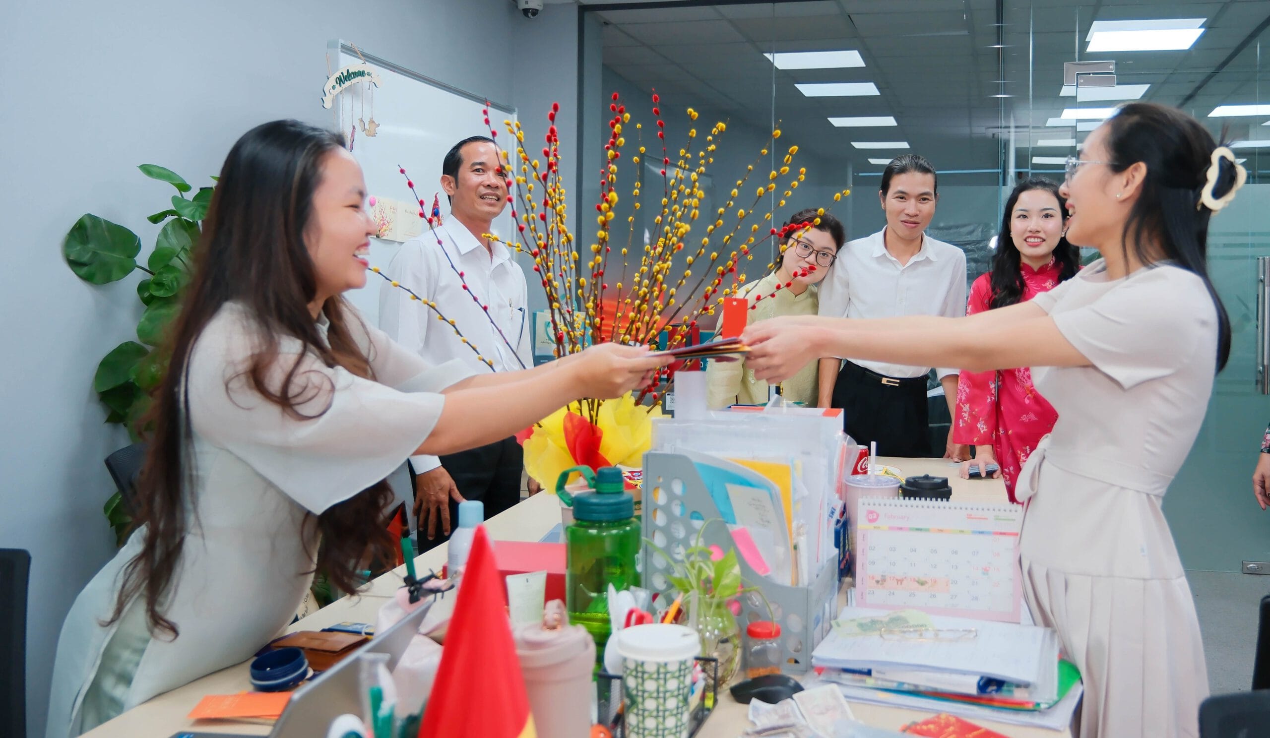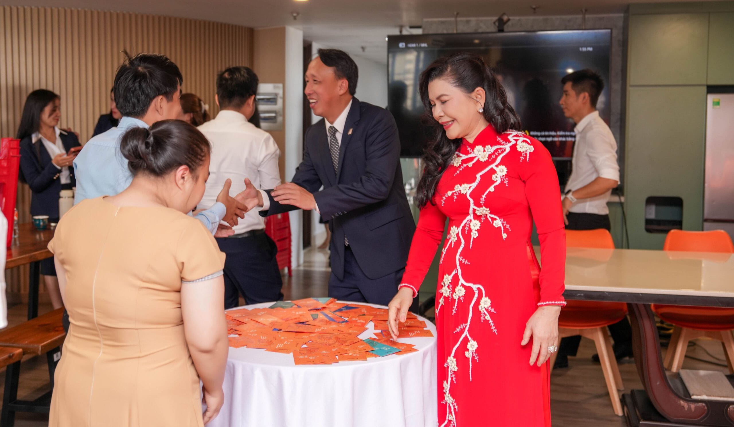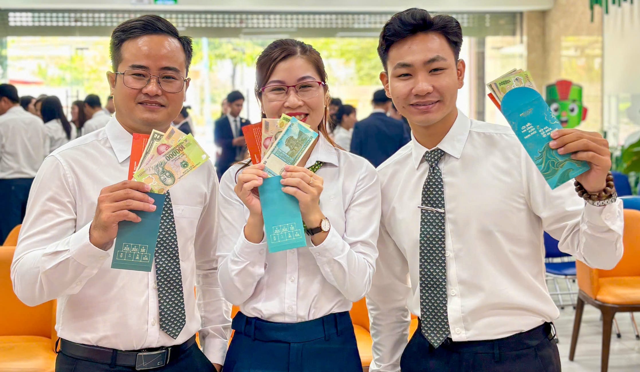 Tại buổi lễ, Ban Lãnh đạo Tập đoàn đã gửi lời chúc năm mới đến toàn thể cán bộ nhân viên trên toàn hệ thống. Những phong bao lì xì đầu xuân được trao tận tay như lời chúc bình an – khởi sắc – vạn sự hanh thông, đồng thời tiếp thêm động lực để tập thể Kim Oanh Group khởi động năm mới với tinh thần tích cực, quyết tâm hiện thực hóa các mục tiêu trọng tâm trong năm 2026.