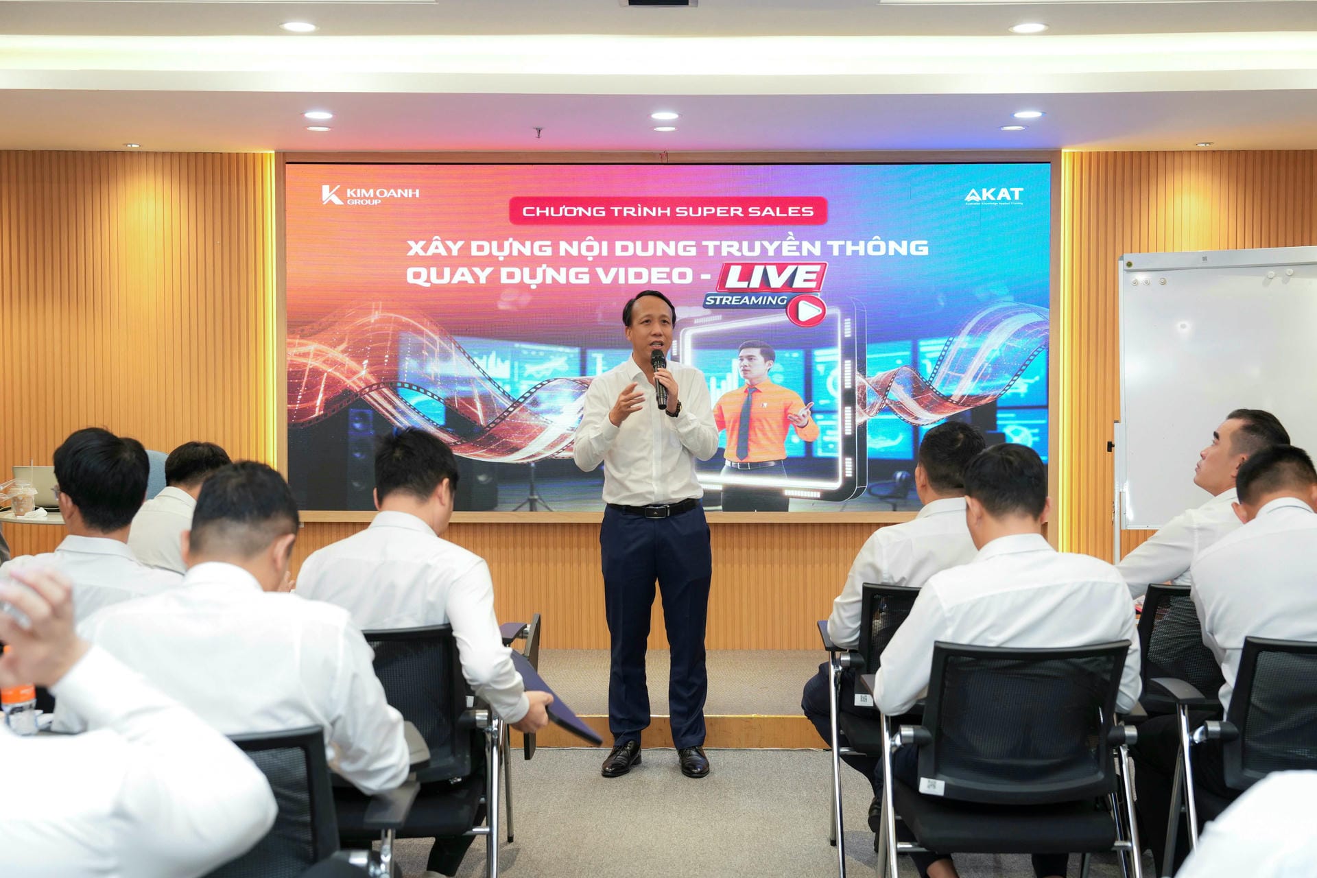 Theo ông Nguyễn Lương Thọ – Phó Tổng Giám đốc Vận hành Kim Oanh Group, khóa đào tạo kỹ năng xây dựng nội dung truyền thông, quay dựng video, livestream thực chiến thuộc chuỗi chương trình Super Sales, được thiết kế riêng cho đội ngũ kinh doanh với mục tiêu phát triển năng lực cốt lõi trong kỷ nguyên số.