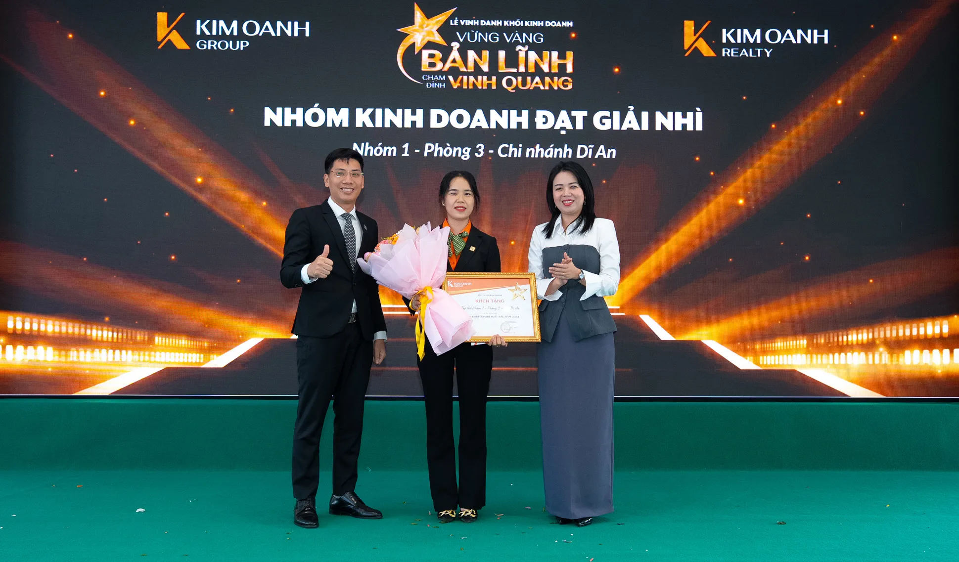 Không chỉ phấn đấu hết mình cho thành tích cá nhân, đội ngũ kinh doanh Kim Oanh Group còn không ngừng nỗ lực đóng góp cho tập thể. Và trên sân khấu Lễ vinh danh, lần lượt các nhóm kinh doanh, phòng kinh doanh đạt thành tích xuất sắc đã tỏa sáng. Đó là phần thưởng cho tinh thần đoàn kết, đồng lòng cùng hướng đến mục tiêu chung.