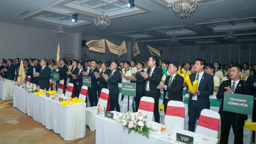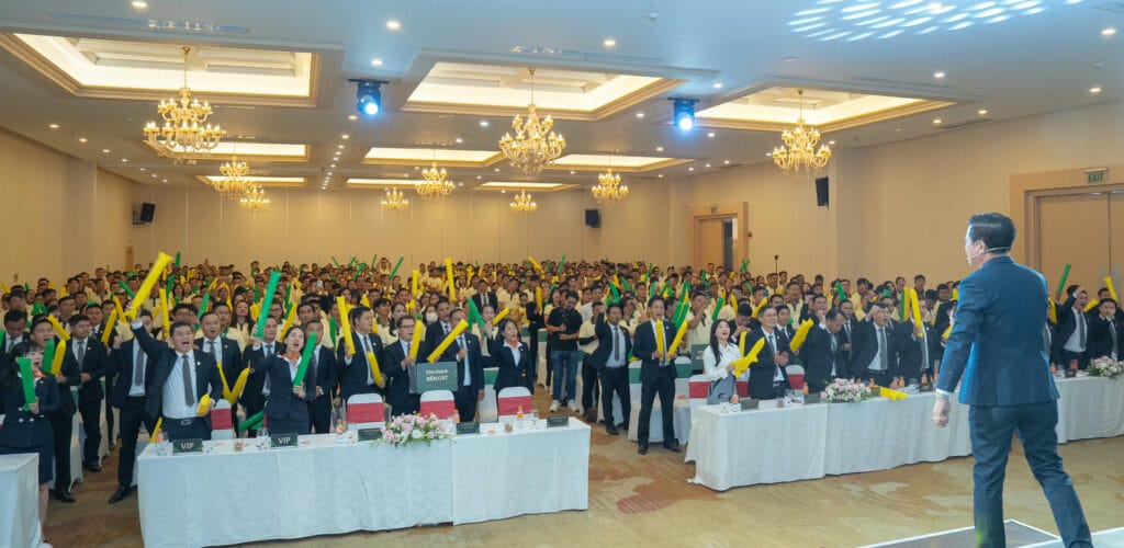 Sự phấn khích của các chiến binh kinh doanh khi nghe công bố chính sách hỗ trợ marketing và thưởng kinh doanh hiệu quả.