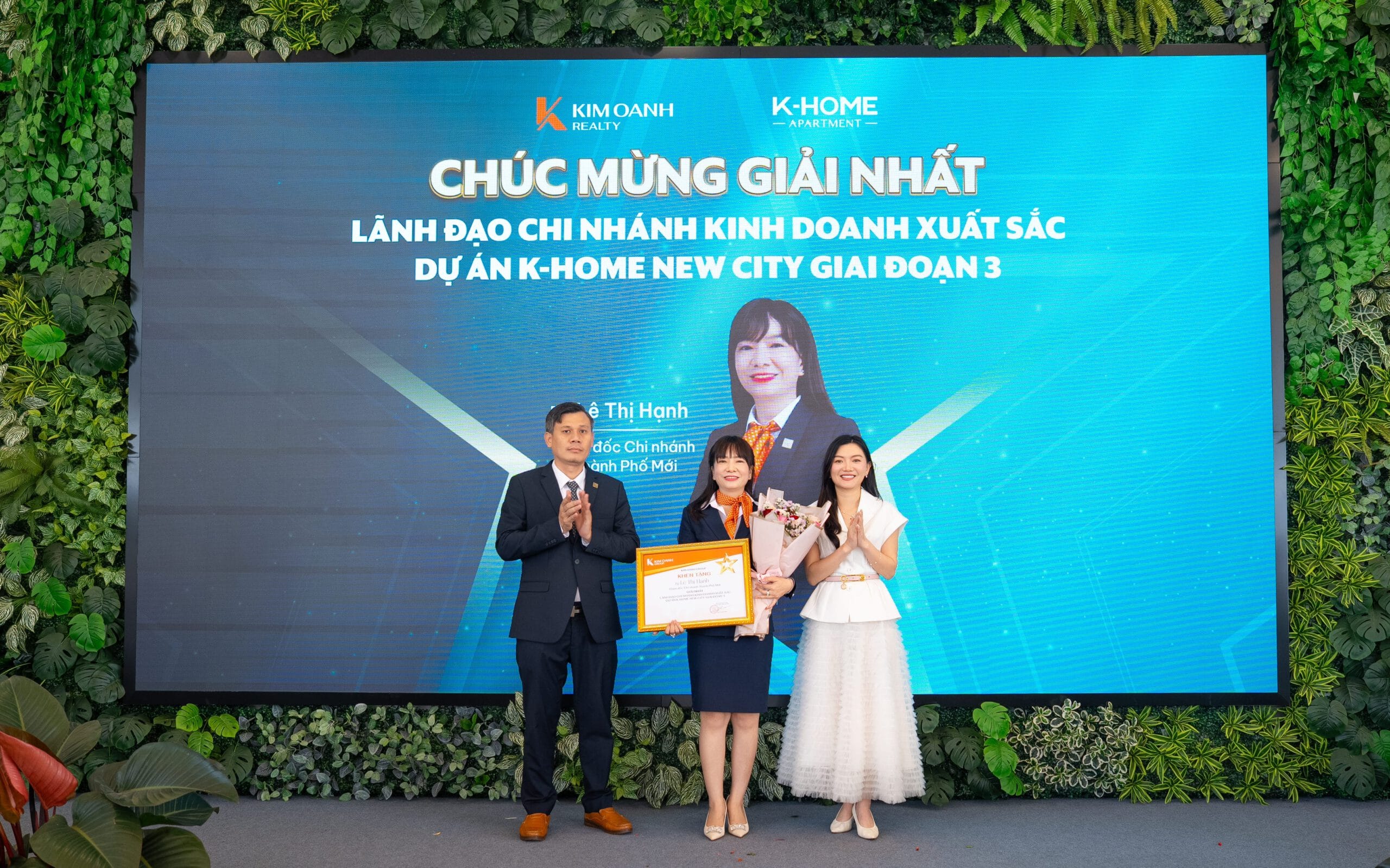 Dẫn dắt Chi nhánh Thành Phố Mới chinh phục thành công nhiều cột mốc quan trọng, bà Lê Thị Hạnh – Giám đốc Chi nhánh Thành Phố Mới đã được xướng tên tại giải Nhất hạng mục Lãnh đạo chi nhánh kinh doanh xuất sắc trong chiến dịch K-Home New City.
