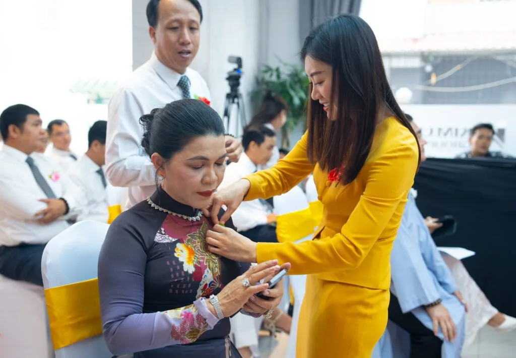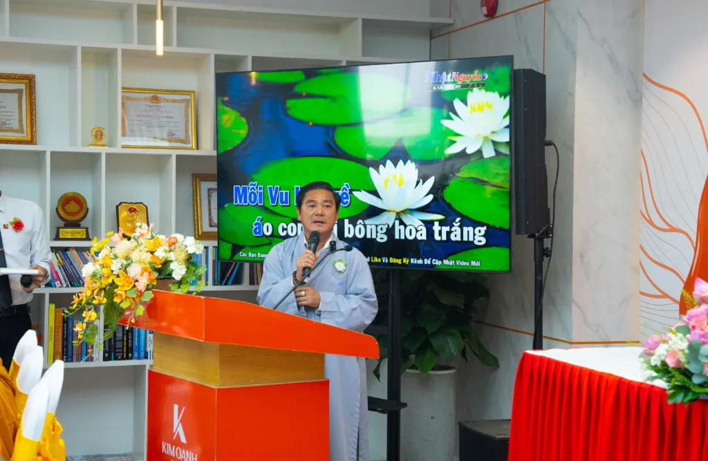 Lãnh đạo và nhân viên Kim Oanh Group thực hiện nghi thức “Bông hồng cài áo”. Hoa đỏ cài lên áo những người con vẫn còn đầy đủ cả Cha lẫn Mẹ; Hoa hồng cài lên áo những người còn vẫn còn Cha hoặc còn Mẹ; Hoa trắng được cài lên áo những người con không may đã mất cả Cha lẫn Mẹ.Mỗi bông hoa hồng được cài trên ngực áo như gợi nhắc mỗi cán bộ nhân viên Kim Oanh Group phải luôn ghi nhớ công ơn sinh thành, dưỡng dục của cha mẹ và phải ý thức sâu sắc về bổn phận, trách nhiệm của con cái đối với các đấng sinh thành.Lãnh đạo và nhân viên Kim Oanh Group cùng lắng lòng mình lại qua ca khúc Thiền tâm do ca sĩ Hạnh Nguyên trình bày.Bà Đặng Thị Kim Oanh – Chủ tịch HĐQT, Tổng Giám đốc Kim Oanh Group tặng hoa thay cho lời cảm ơn đến ca sĩ Hạnh Nguyên.Lãnh đạo và nhân viên Kim Oanh Group lắng nghe pháp thoại “Vu Lan – Mùa báo hiếu” do Ni Sư Thích Nữ Hằng Liên chia sẻ. Theo Ni Sư, Vu Lan Báo Hiếu là một đại lễ rất nhân văn, có ý nghĩa giáo dục thiết thực về đạo Hiếu, về truyền thống “Uống nước nhớ nguồn” của dân tộc, góp phần xây dựng và phát triển những giá trị đạo đức lành mạnh trong xã hội hiện nay.Cán bộ nhân viên Tập đoàn tìm hiểu về nguồn gốc, ý nghĩa của ngày lễ Vu Lan báo hiếu tại Việt Nam và tại một số quốc gia Châu Á. Việc truy nguyên lịch sử không chỉ giúp hiểu thêm các giá trị văn hoá của Phật Giáo Việt Nam mà còn góp phần củng cố các giá trị bên trong mỗi người như tình thương yêu, lòng trắc ẩn, lòng biết ơn, nhất là tinh thần hiếu đạo… cũng như thấu hiểu và có cái nhìn khác về cuộc sống theo hướng tích cực và lạc quan hơn.Thông qua câu chuyện hiếu đạo của Tôn giả Mục Kiền Liên và Tôn giả Xá Lợi Phất, Ni Sư Thích Nữ Hằng Liên một lần nữa làm rõ hơn nguồn gốc cũng như ý nghĩa của ngày lễ Vu Lan dưới góc nhìn Phật Giáo. Đồng thời, Ni Sư cũng giải thích chi tiết về việc lựa chọn hoa hồng trở thành biểu tượng thiêng liêng của ngày lễ Vu Lan và ý nghĩa màu sắc mỗi bông hoa được cài lên ngực áo những người con.Lắng nghe chia sẻ của Ni Sư Thích Nữ Hằng Liên, mỗi cán bộ nhân viên Kim Oanh Group đều không giấu được nỗi xúc động khi nhìn về đóa hoa hồng đang cài trên ngực áo của mình.Trong giây phút tri ân đầy xúc động, lãnh đạo và nhân viên Tập đoàn hướng về đấng sinh thành của mình với tấm lòng biết ơn và thành kính. Với những ai vẫn còn cha mẹ thì Vu Lan là dịp để cầu nguyện cho cha mẹ được mạnh khỏe, an lạc, được sống hạnh phúc dài lâu bên con cái. Còn với những ai không may đã không còn đầy đủ cha mẹ ở bên cạnh thì đây là dịp để mọi người cầu nguyện cho cha mẹ đã mất được vãng sinh.Ông Nguyễn Thuận – Phó Chủ tịch HĐQT Kim Oanh Group, pháp danh Quảng Hòa tặng hoa sen tri ân những chia sẻ hết sức ý nghĩa và giá trị từ Ni Sư Thích Nữ Hằng Liên.Ông Nguyễn Thuận và bà Đặng Thị Kim Oanh thực hiện nghi thức tác bạch tri ân đến Ni Sư Thích Nữ Hằng Liên và các Chư Tôn Thiền Đức Ni.Tập thể cán bộ nhân viên Kim Oanh Group cùng đứng lên tác bạch tri ân đến Ni Sư Thích Nữ Hằng Liên và các Chư Tôn Thiền Đức Ni.Ông Nguyễn Thuận thể hiện ca khúc “Vu Lan nhớ mẹ” như một lời tri ân gửi đến các đấng sinh thành đã khuất. Đây cũng là món quà ý nghĩa nhắc nhớ về đạo hiếu mà ông Nguyễn Thuận gởi tặng đến lãnh đạo và nhân viên Tập đoàn.Với bông hồng trắng cài trên ngực áo, ông Nguyễn Thuận không khỏi xúc động: “Trăm điều thiện, chữ HIẾU đứng đầu. Tôi thành thật chúc mừng những ai đang cài hoa hồng đỏ trên ngực áo. Những ai cài hoa màu hồng vẫn là một điều rất may mắn vì các bạn vẫn còn một nửa cơ hội để báo hiếu cho cha mẹ. Với những ai đang cài hoa trắng giống như tôi thì hãy nỗ lực hết mình để trở thành người tốt, thành công và cống hiến cho xã hội. Đó là cách tốt nhất để trả hiếu cho cha mẹ đã mất của mình”.Cũng trong khuôn khổ chương trình, lãnh đạo và nhân viên Kim Oanh Group còn được lắng nghe những chia sẻ hết sức giá trị từ Phật tử Trần Kim Liễu – Tiến sĩ luật học, Chánh Văn phòng Trường Đại học Luật Hà Nội với chủ đề “Kết nối thành công – Hạnh phúc đong đầy”.Bà Đặng Thị Kim Oanh tặng hoa và cảm ơn Phật tử Trần Kim Liễu đã không ngại đường sá xa xôi để đến tham dự chương trình Vu Lan – Mùa báo hiếu của Tập đoàn.