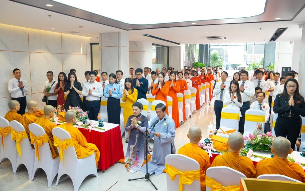 Buổi pháp thoại do Ni sư Thích Nữ Hằng Liên – Tiến sĩ, Giảng viên Khoa Triết học, Học viện Phật giáo Việt Nam tại TP.HCM, Trụ trì Thiền viện Pháp Sơn chủ trì với sự tham gia của lãnh đạo và nhân viên toàn hệ thống Kim Oanh Group.
