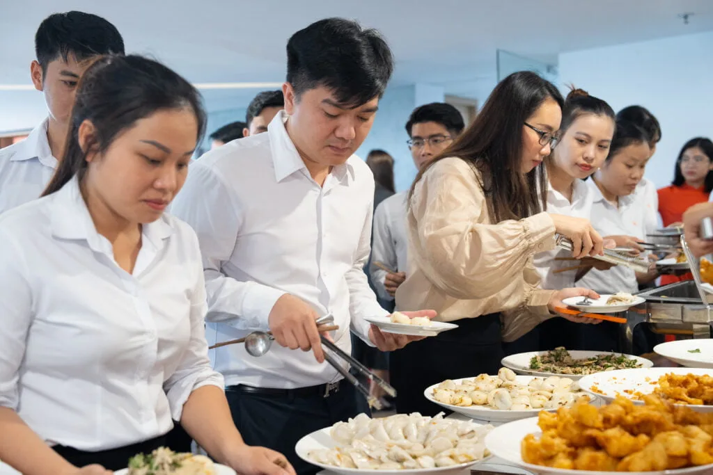 Lãnh đạo và nhân viên Kim Oanh Group chụp ảnh lưu niệm cùng khách mời tại chương trình.Trong ngày Vu Lan Báo Hiếu, bà Đặng Thị Kim Oanh còn chuẩn bị bữa trưa chay cho tất cả lãnh đạo và nhân viên.Bữa ăn mang đậm không khí gia đình với thức ăn chủ yếu là rau củ quả nhằm cầu nguyện sức khỏe cho bản thân, cho gia đình, đặc biệt là cho cha mẹ của mình.