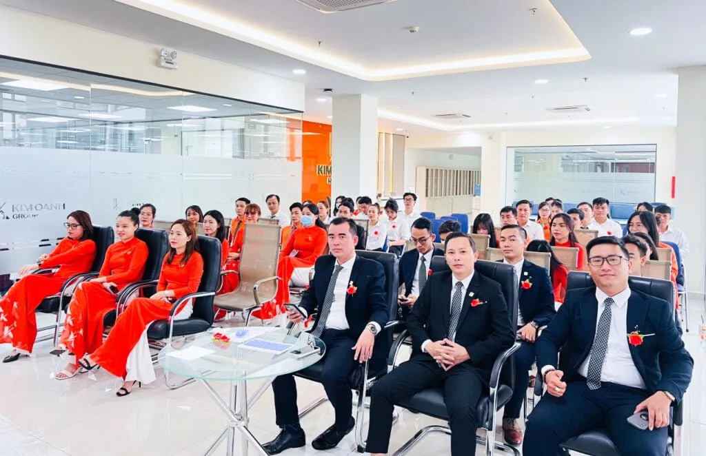 Hình ảnh lãnh đạo và nhân viên Kim Oanh Group tham dự trực tuyến buổi pháp thoại:
