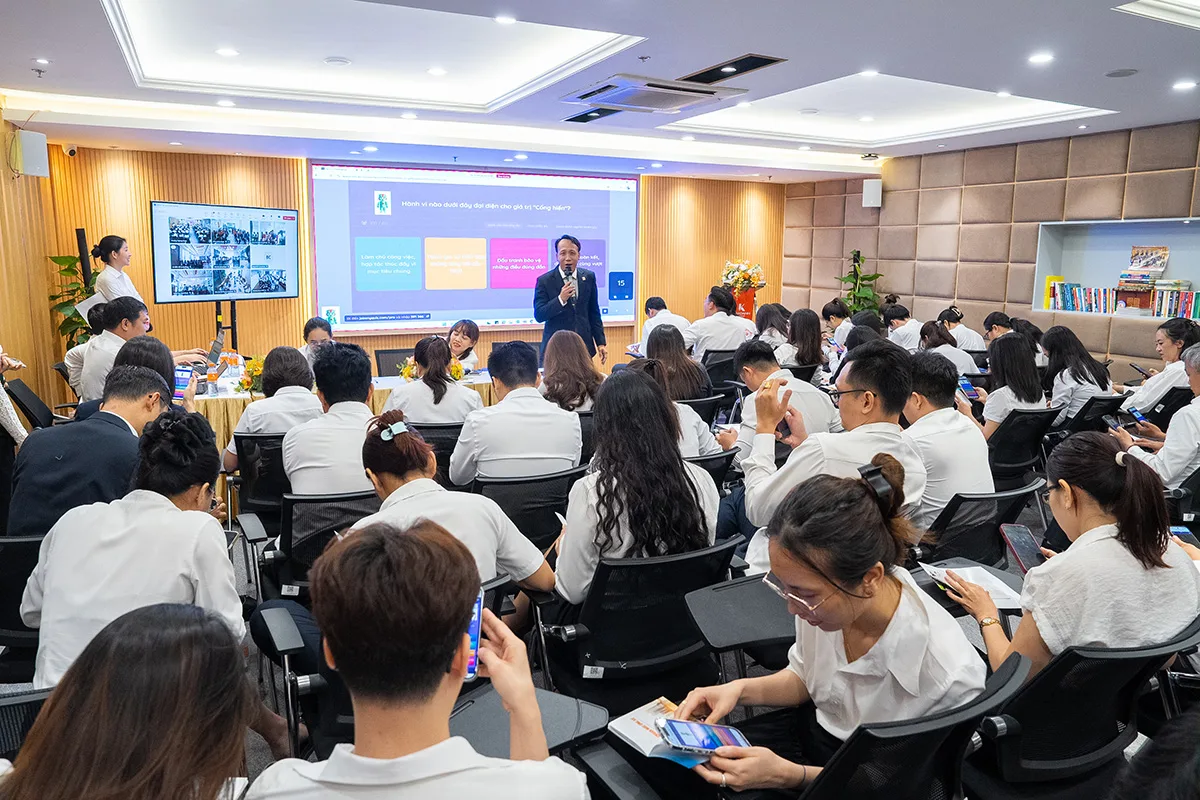 Dù được tổ chức dưới hình thức trực tuyến nhưng không khí tại các điểm cầu kết nối lại sôi động không kém gì một hội trường lớn. Từ Trụ sở đến các chi nhánh, từ các khối văn phòng đến các khối kinh doanh, từ lãnh đạo, các cấp quản lý đến cấp chuyên viên, từ những nhân sự thâm niên dày dặn đến những nhân sự vẫn đang thử việc, tất cả đều rộn ràng tiếng nói cười, sự hồi hộp, háo hức và tinh thần quyết tâm cao độ. Những gương mặt rạng rỡ, ánh mắt chăm chú theo dõi màn hình và những cú click chuột đầy tập trung đã tạo nên một “cuộc đua tri thức” trên hành trình văn hóa doanh nghiệp đầy hào hứng, sôi nổi và gắn kết.